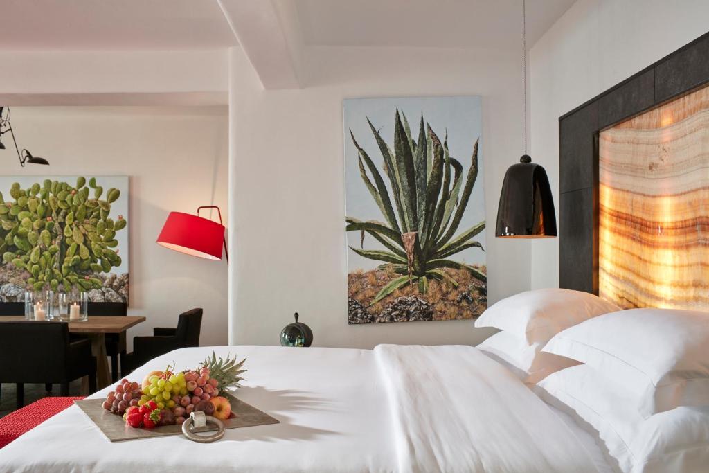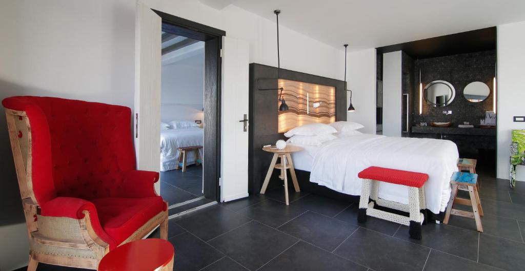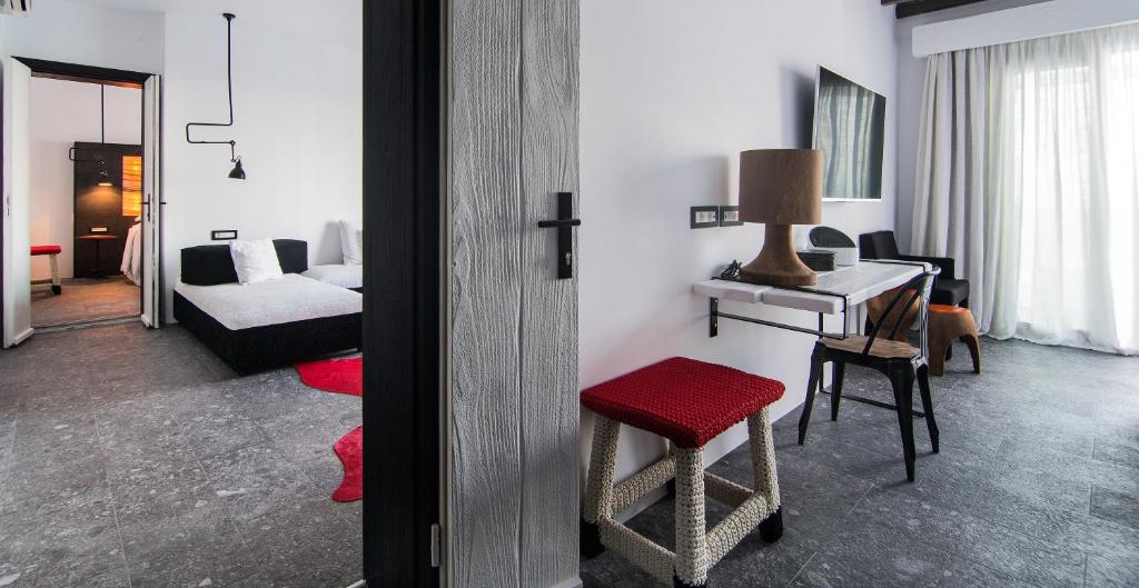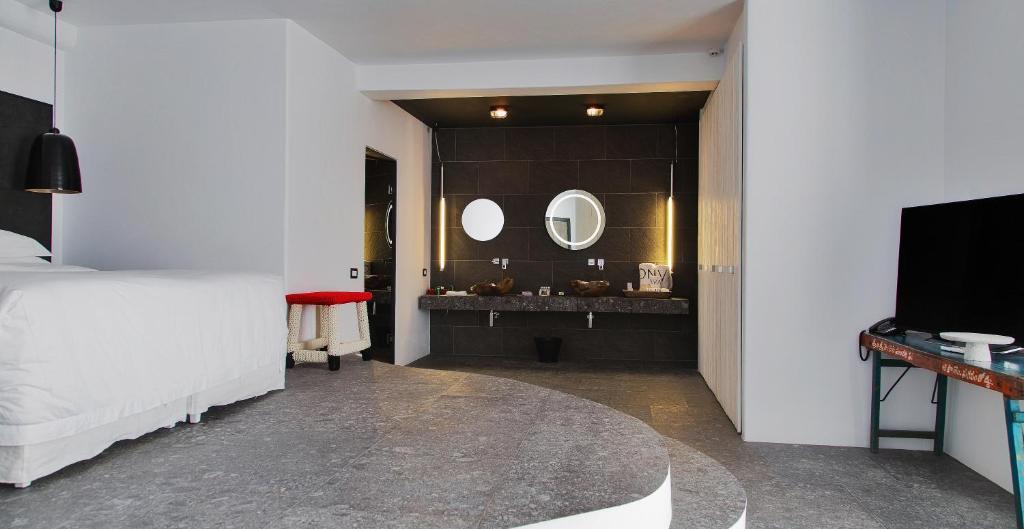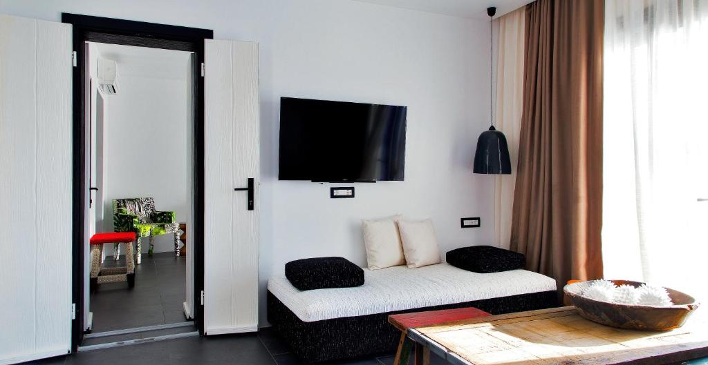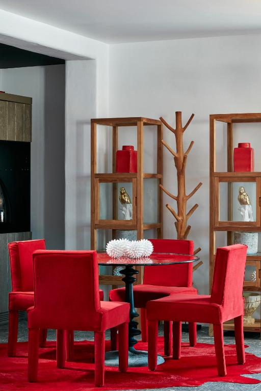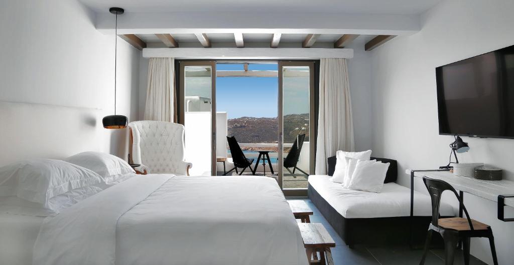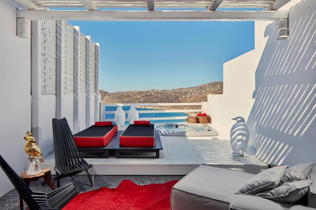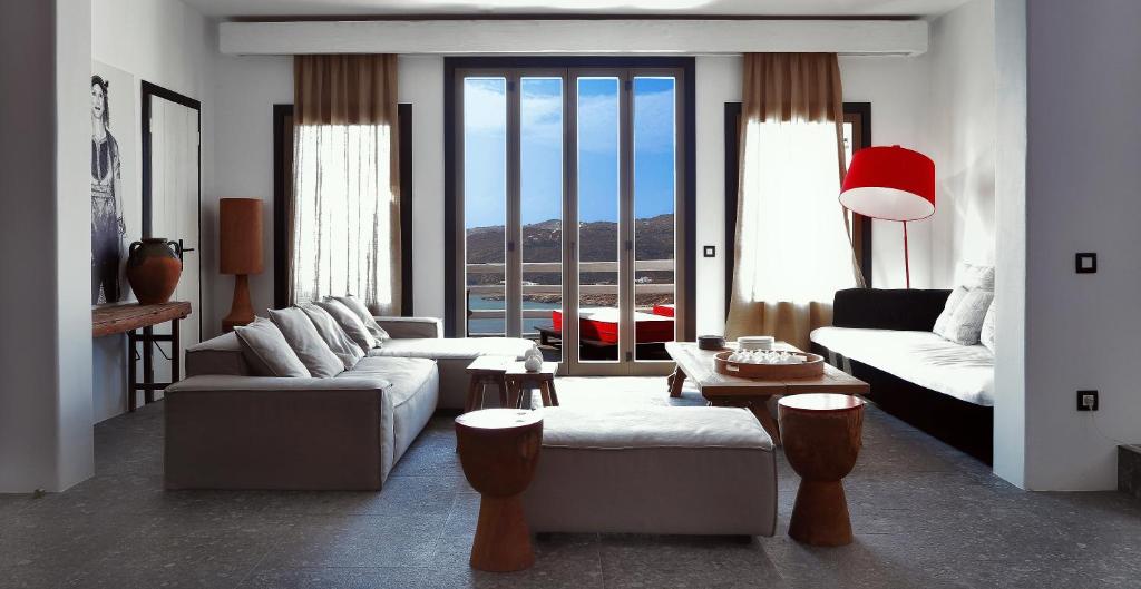All units are air conditioned and equipped with a flat-screen, satellite TV, iPod docking station and minibar. In the luxurious bathrooms you will find free toiletries, bathrobes and slippers. Start your day on the sea-view terrace of the restaurant and enjoy a rich breakfast including Greek yogurt, organic honey, and other Mykonian delicacies. Gourmet dishes based on traditional recipes are prepared for lunch and dinner by the chef. Within 10 km, you can reach the local airport, as well as the cosmopolitan centre of Mykonos Town. The 24-hour front desk will assist you with transfers, car rentals and concierge service. Free on-site parking is available.