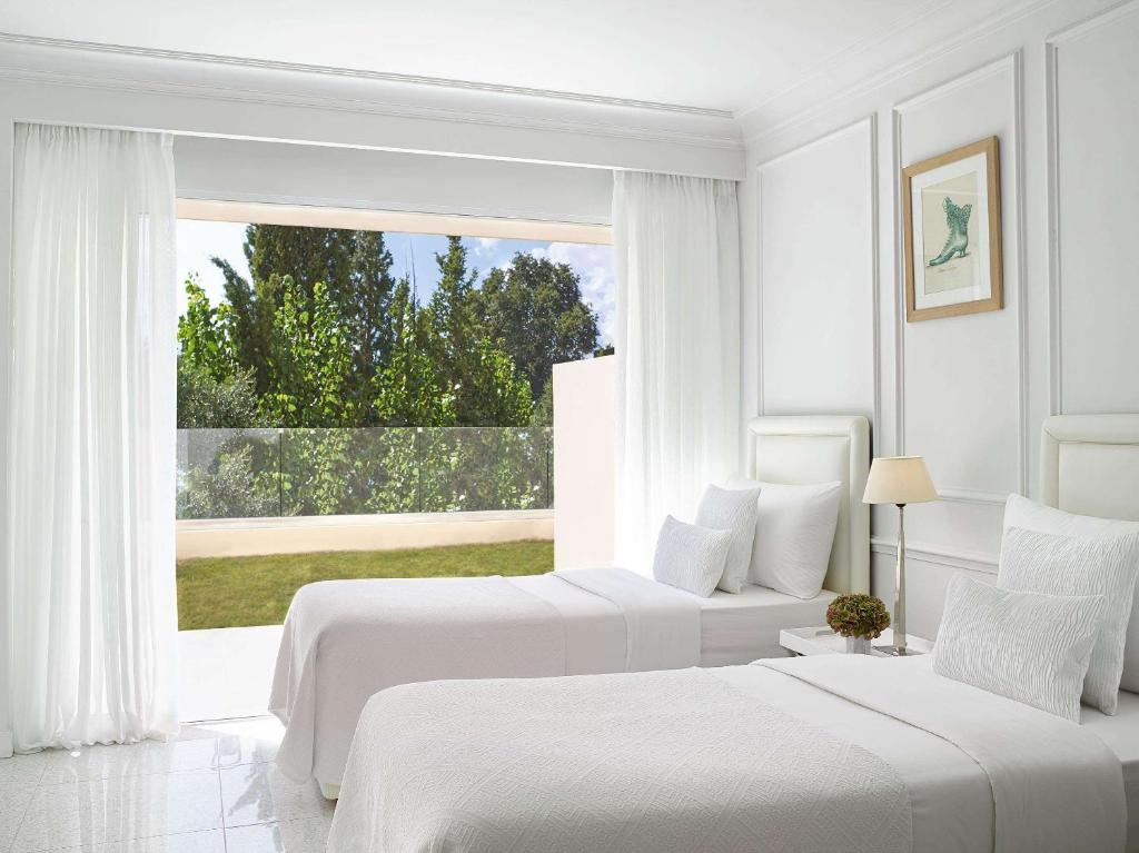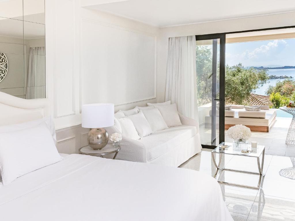 Standing on its private peninsula with unobstructed views of the Ionian Sea, Corfu Imperial, A Grecotel Resort to Live features 4 private sandy beaches, a large outdoor pool, a small outdoor pool & one pool at Boschetto. All rooms at this hotel enjoy sea or garden view whether allocated in the main building or in a bungalow nestled in the gardens that lead down to the sea.