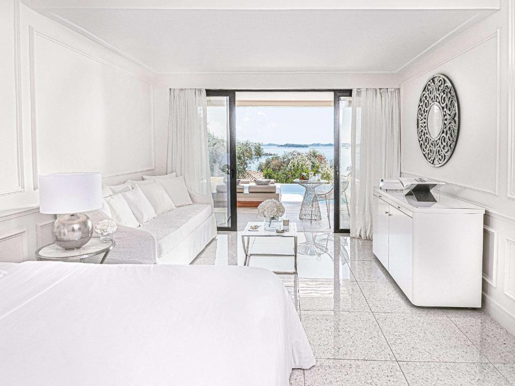 Corfu Imperial dining combines exclusive waterfront settings and award-winning chefs. Gourmet restaurant Aristos offers à la carte Greek and Mediterranean dishes. Guests can enjoy an after-dinner drink in the lounge bar, the cocktail bar and the pool bar. Previously a favored retreat for royalty, this island hideaway provides the perfect setting for spa treatments. Shopping opportunities include a jewelry shop, clothes boutique and a hairdresser. The hotel's entertainment team offers a variety of activities from morning gym, aerobics and beach games to dancing lessons, evening shows and musical nights from the island's rich tradition. Corfu Town is located 7.5 mi away. There is free private on-site parking and the hotel shuttle bus offers transfer to Corfu town up to 4 times daily.