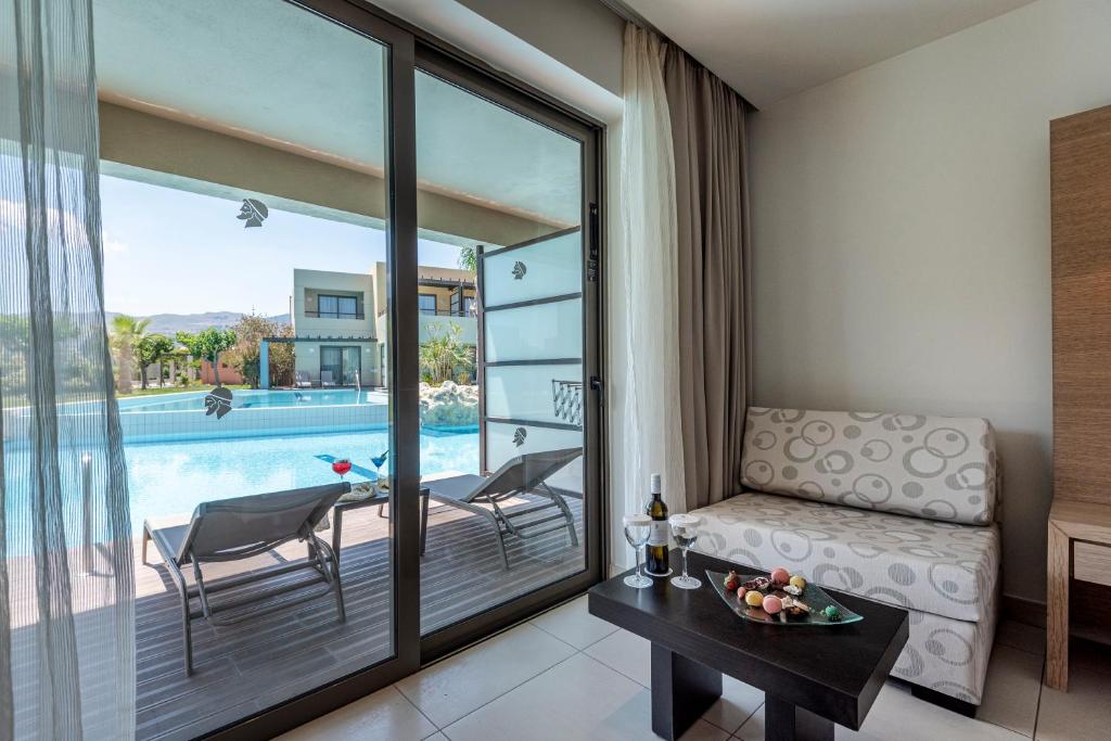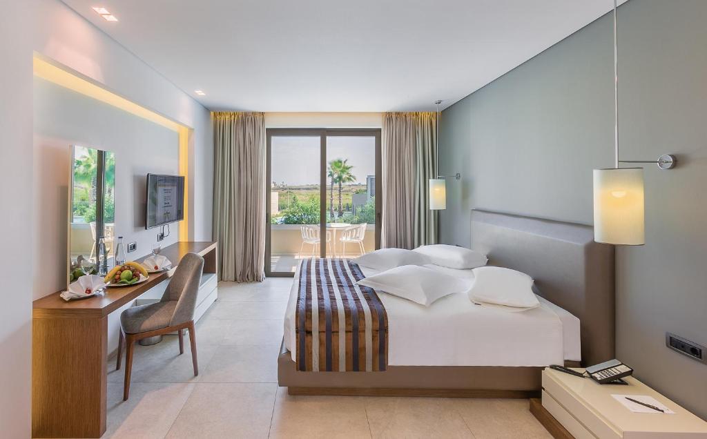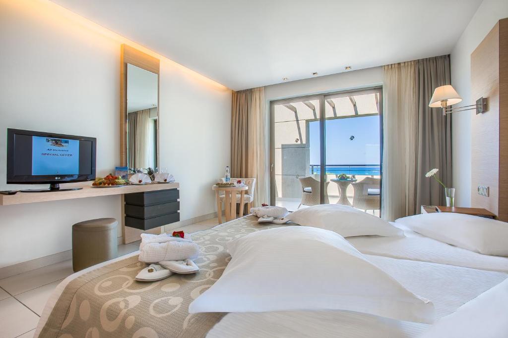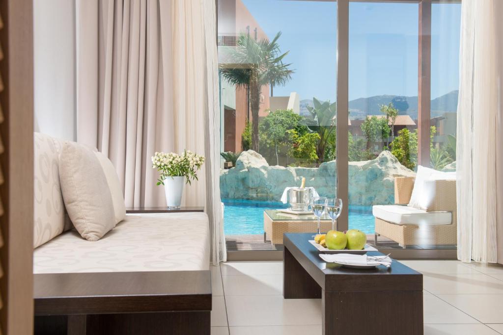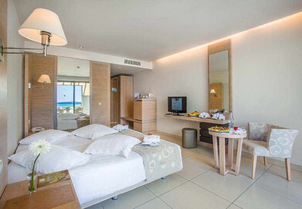 Located directly on the waterfront, the 5-star Astir Odysseus Kos Resort and Spa offers fine dining, 5 swimming pools, a spa with indoor pool and various sport facilities. It is just 3.1 mi from Tigaki village and the wonderful beach. Astir Odysseus rooms, maisonettes and suites are very spacious and each is equipped with LCD satellite TV and free WiFi access.