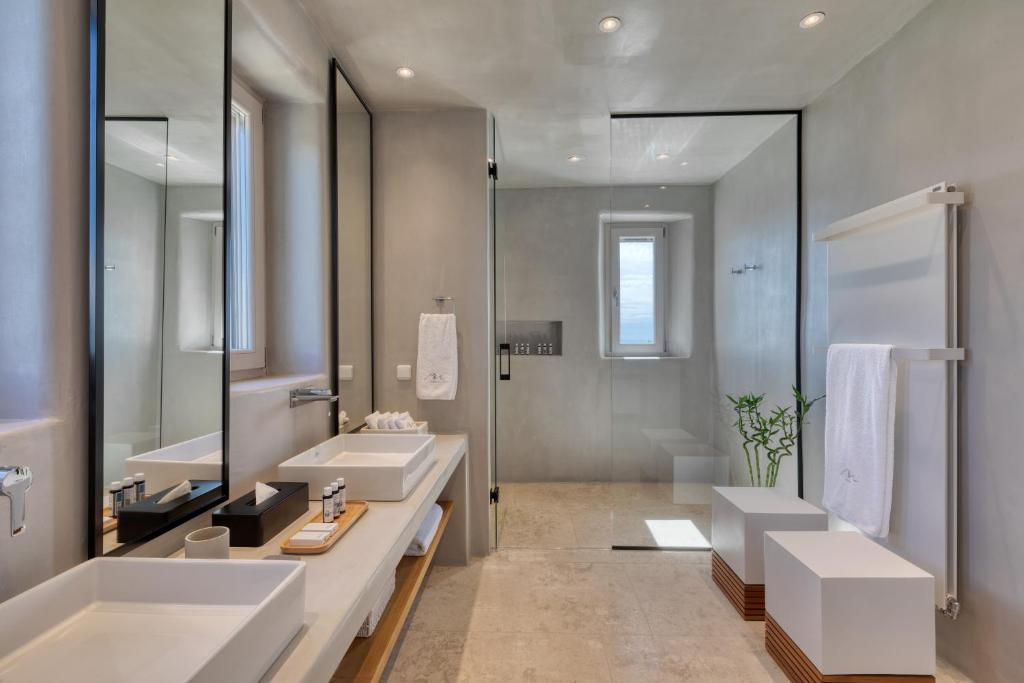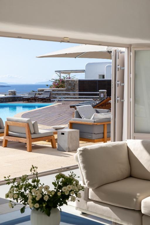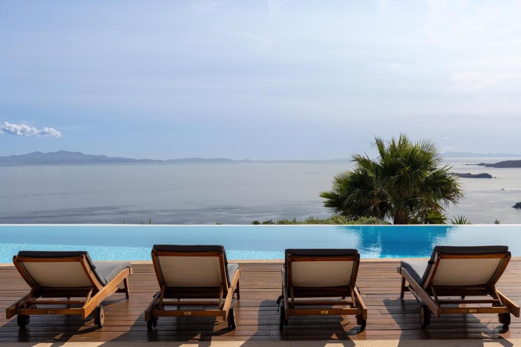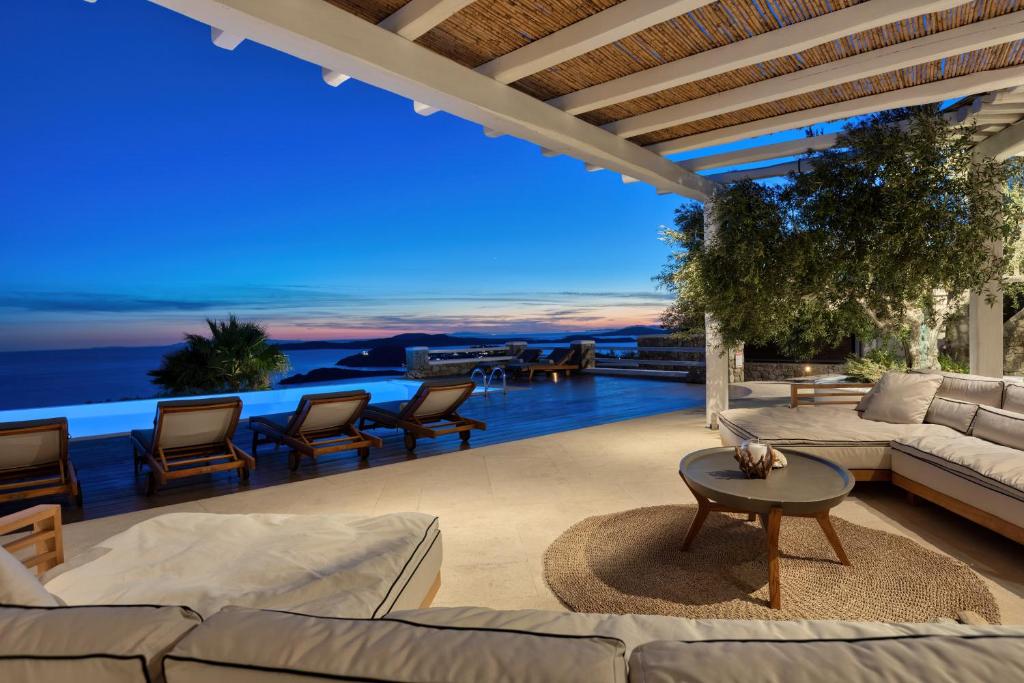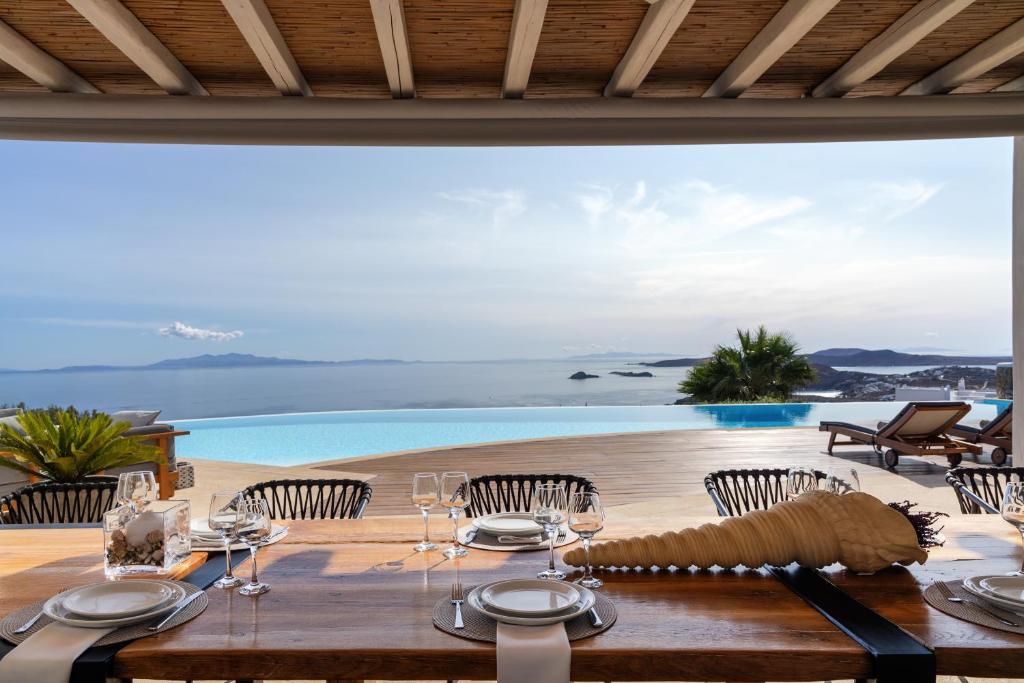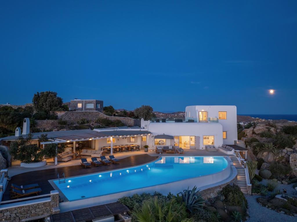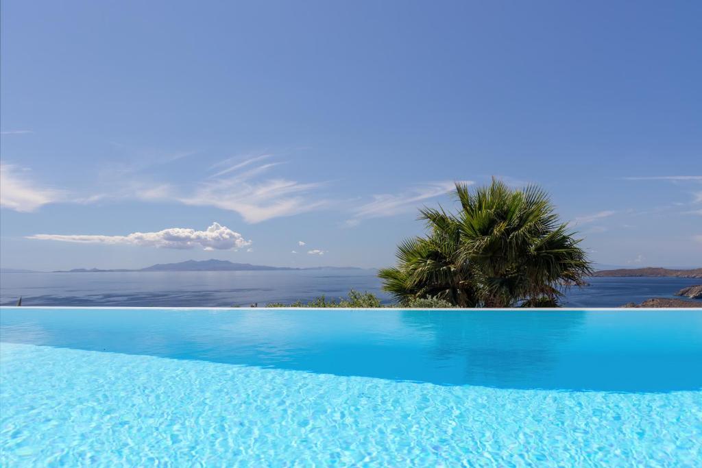 Step into the Alia Villa Complex and experience the best of comfort and luxury in this spacious and elegant villa divided into two buildings featuring 9 bedrooms and an infinity pool (heated pool upon request) with panoramic views to the Aegean Sea! Tip: You can rent the whole property (9 bedrooms) or only the 5-bedroom villa.