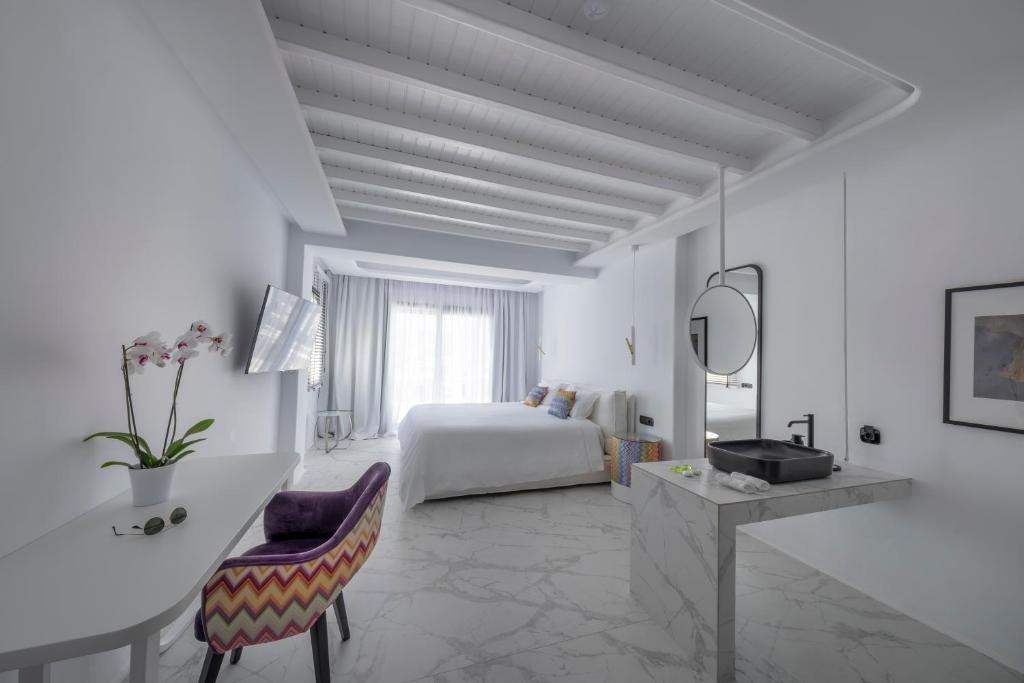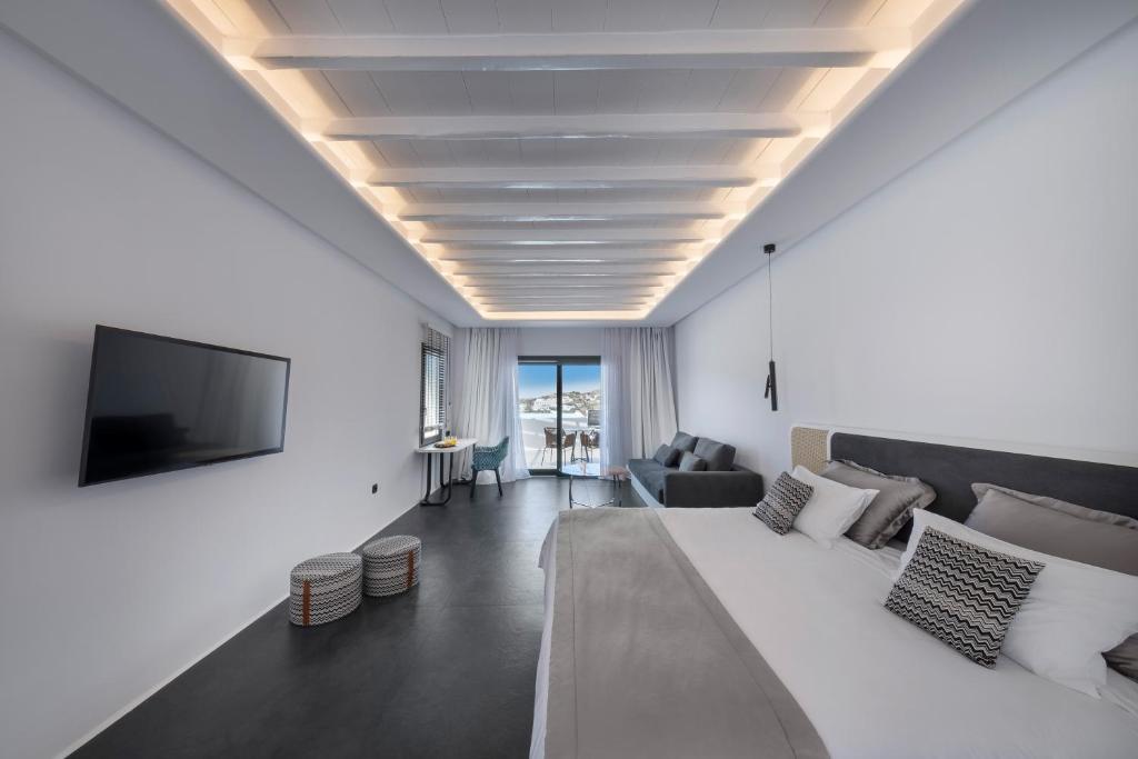 Overlooking Ornos Bay, Deliades Hotel features large rooms with free WiFi, a swimming pool with hydromassage and a poolside restaurant. The Cycladic complex is only 164 feet from the beach. All rooms and suites are air conditioned and come with a flat-screen, satellite TV and mini-bar....