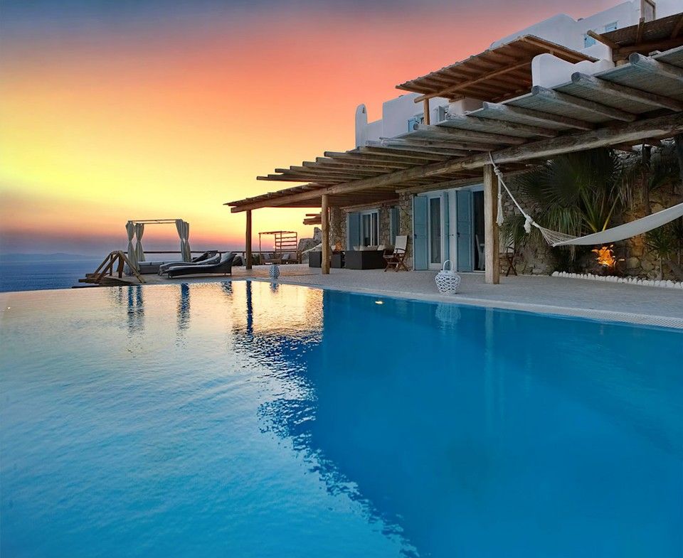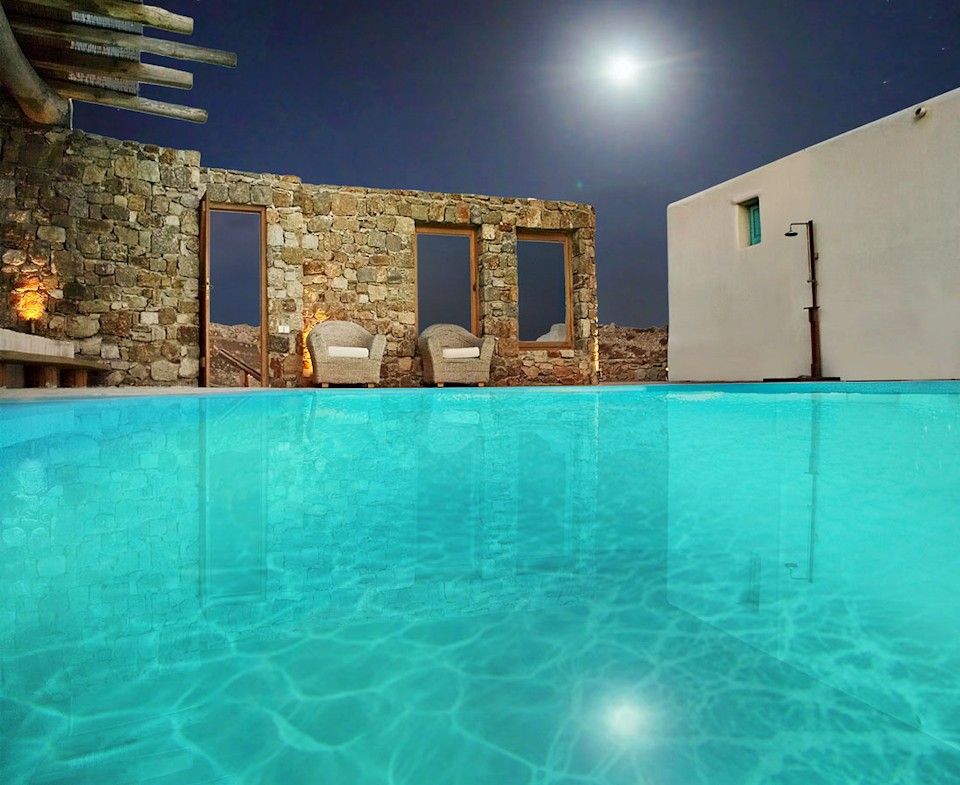 ...Miraculously set amidst the emerald waters of the sea and the azure sky these utterly seductive Mykonos luxury Villas offer a heavenly retreat for couples seeking a one of a kind experience in some of the most exclusive private luxury villa rentals near Mykonos town. Idyllically situated on the top of the hill Zinas Villas in Mykonos seem to reach for the sky whilst enjoying commanding panoramic vistas of the endless horizon and the enchanting Mykonos town of the magnificent insular complex of the Cyclades in Greece. All luxury villa rentals with pool have been crafted and decorated to high standards of luxury and style with unique natural handmade furniture and impressive irreplaceable adornments meticulously collected from all heavens on earth by the owner himself, the well-known Greek fashion designer Panos Zinas, who also owns a glorious fashion boutique in Mykonos town supplying luxurious gowns, day dresses and beachwear. Unrivaled Luxury Villas in Mykonos for Couples Nuzzled amidst the gracious nature the unrivaled Zinas luxury villas in Mykonos harmoniously blend into the miraculous seascape providing an intimate hideaway for couples and discerning travelers in search for a heaven on earth. Brilliantly positioned in the scenic area of Kastro near Mykonos town these exclusive private villa rentals with pool have been brilliantly appointed and designed to ensure a prestigious holiday experience for all treasured guests. Zinas luxury accommodation in Mykonos offers the perfect setting for indulging holidays, exclusive honeymoons and romantic interludes in the captivating island of Mykonos of the Cyclades islands cluster in Greece. Couples can succumb to the serenity that beckons from the tranquility of the shimmering sea, immerse in the Jacuzzi as the sunset slowly fades over the horizon and relish a candle light dinner under the veil of stars as the sweet sea breeze gently caresses their face.