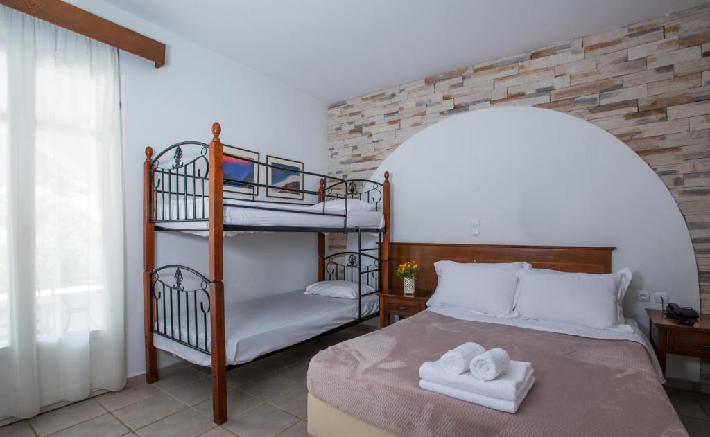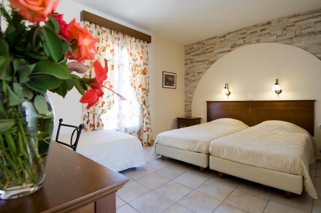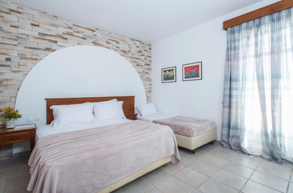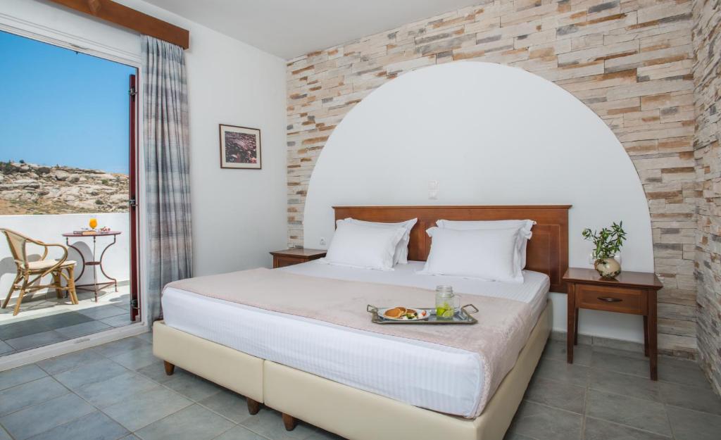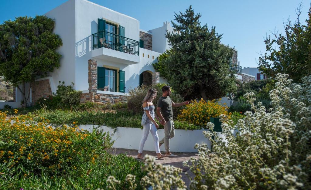 However there are transfer services available upon request for the benefit of guests,with an additional charge. Set within the tranquil green grounds of a simple garden, creating a traditional Cycladic atmosphere, the complex includes a restaurant, bar, spa and fitness facilities such as an outdoor swimming pool. An American breakfast is served daily. The area provides the opportunity to go horse riding. The hotel will endeavor to guarantee that you enjoy an unforgettable stay.