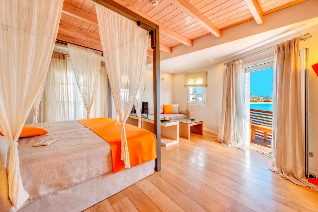 Located right on the beach of Agios Georgios, the 5-star Nissaki Beach Hotel offers boutique-style accommodations following the minimal Cycladic style. It is surrounded by palm trees and guests can taste a variety of menus at the seaside restaurant. Decorated in light tones with colorful accents, rooms and suites at Nissaki Beach open out to a balcony, some with Aegean Sea views.