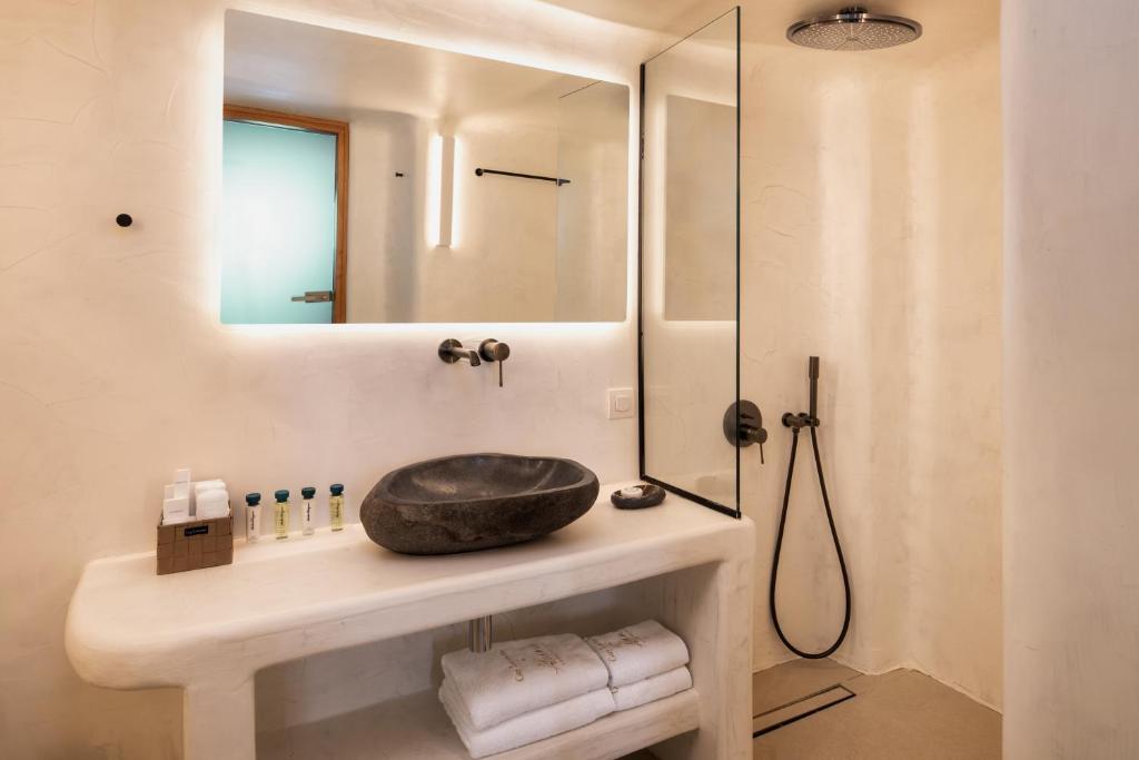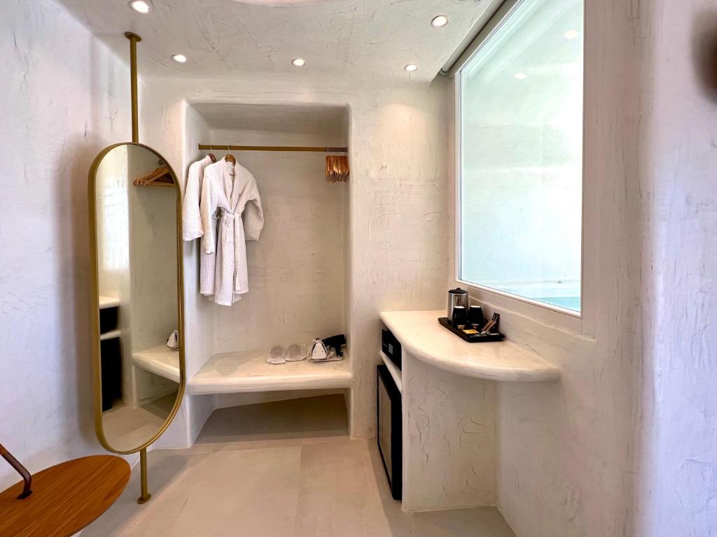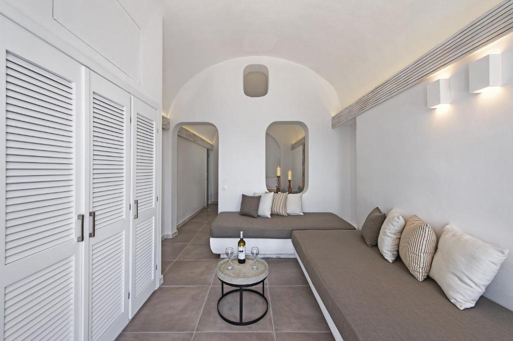 ... All units are comfortable and spacious, carved inside the volcanic earth according to the unique traditional style of the island’s architecture. They are all equipped with modern amenities such as flat-screen, satellite TV and iPod dock. All units enjoy panoramic views over the Aegean Sea, the Caldera and the volcano. An array of meals, drinks and snacks are served at the property's bar restaurant, or at your suite. Several restaurants and bars can be reached within a short walk. Athina Luxury Suites is conveniently located within a short walking distance from Fira’s center, where a variety of shops can be found. Ormos Athinios Port is 2.2 mi away, while Santorini National Airport is at a distance of 4.3 mi. Airport and port shuttle service can be arranged upon request and at extra charge.