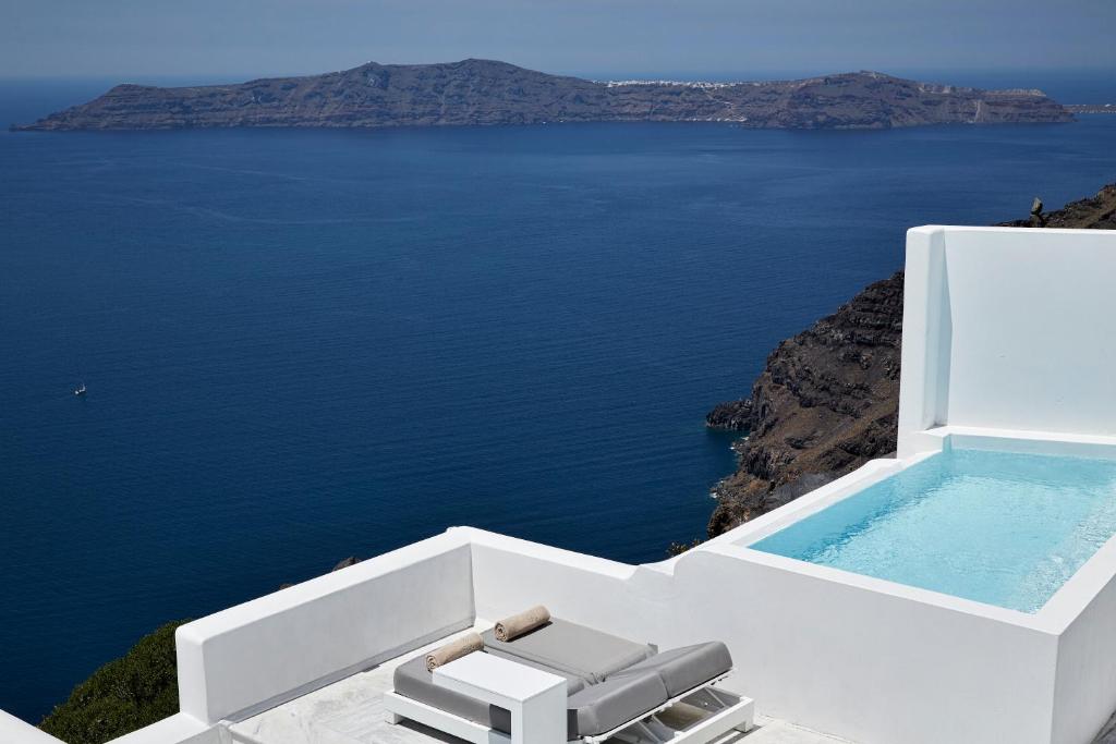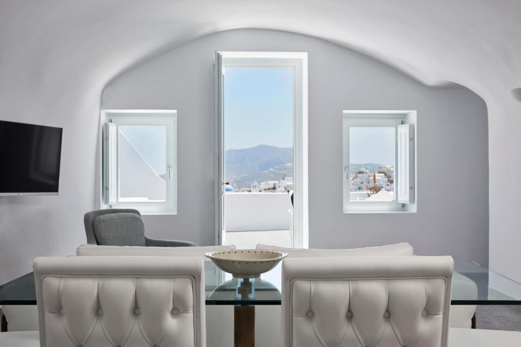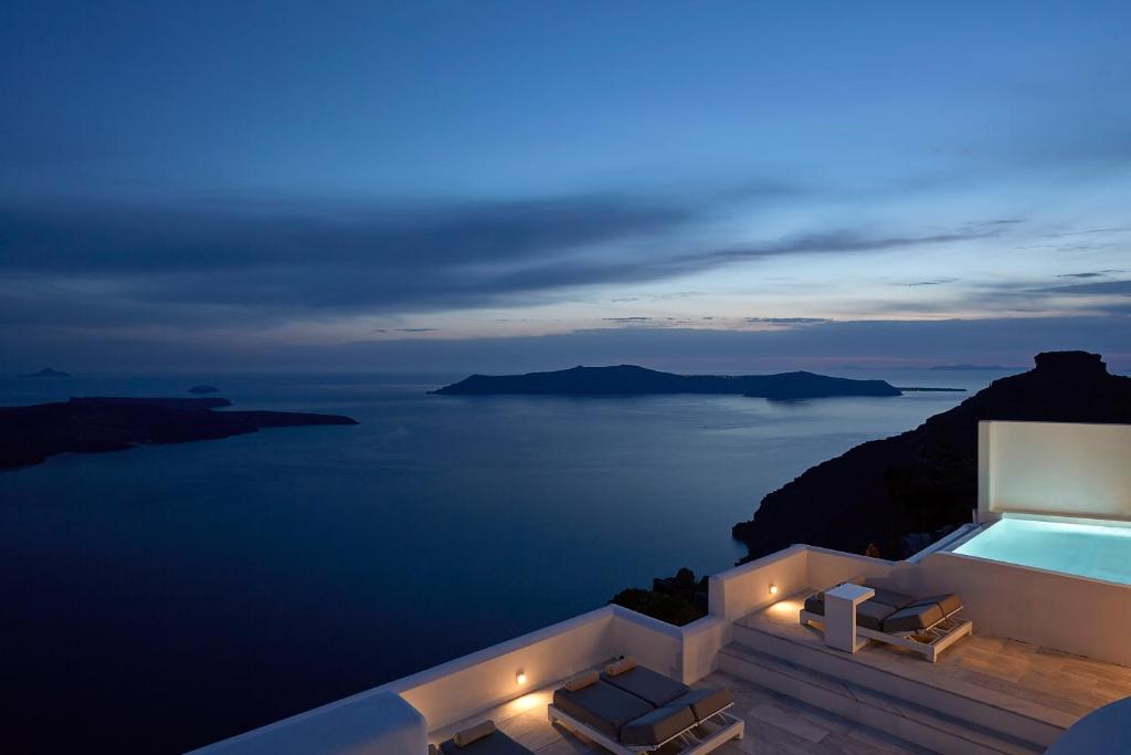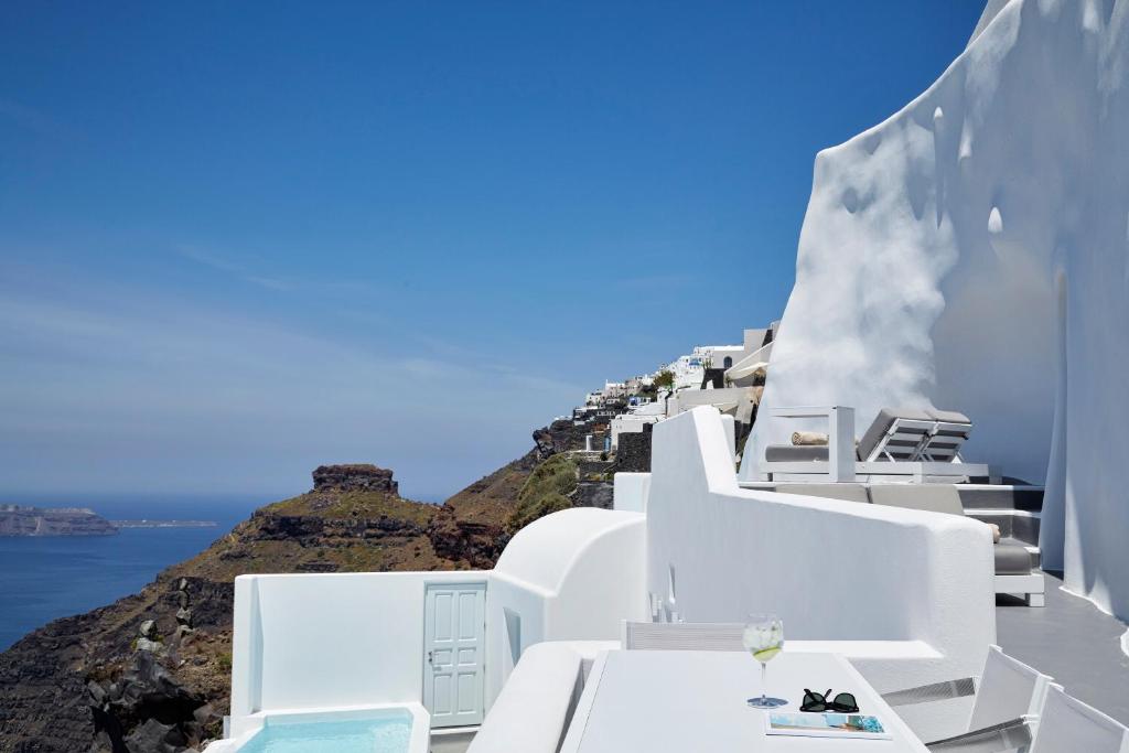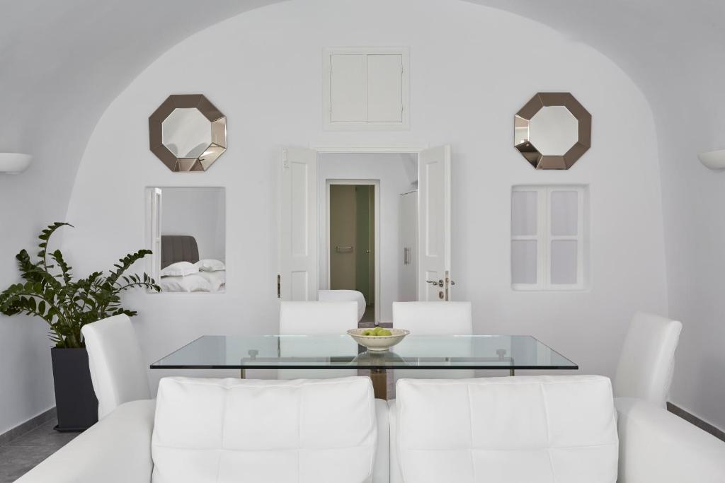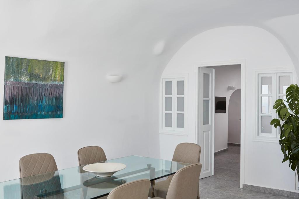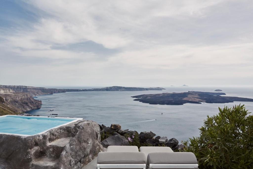 Perched on Caldera Cliff in Imerovigli, Eden Villas Santorini offers elegantly decorated villas, each with views over the Caldera and a terrace with outdoor pool. Blending traditional with modern elements, the villas are fitted with arched walls and white tones. Each has a seating area with a flat-screen satellite TV, a kitchen with a dining area, and a private bathroom.
