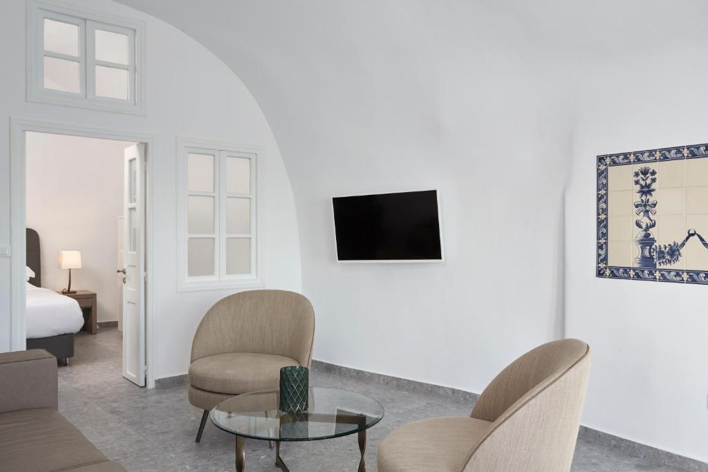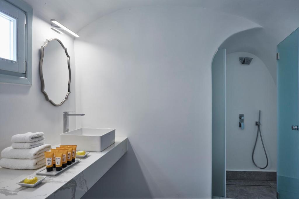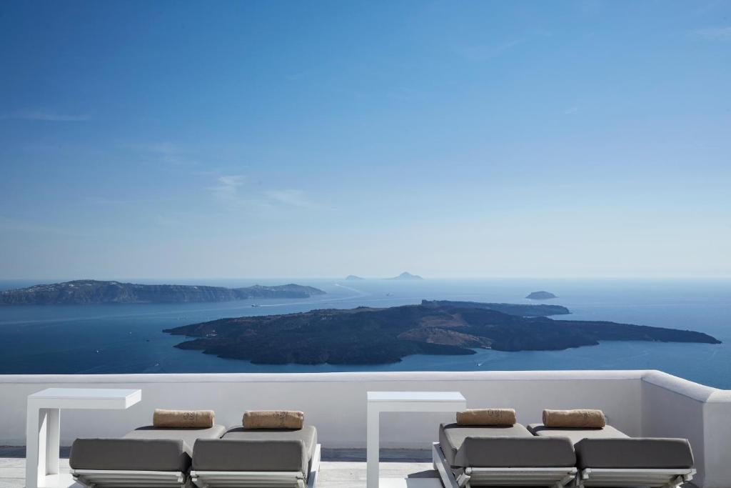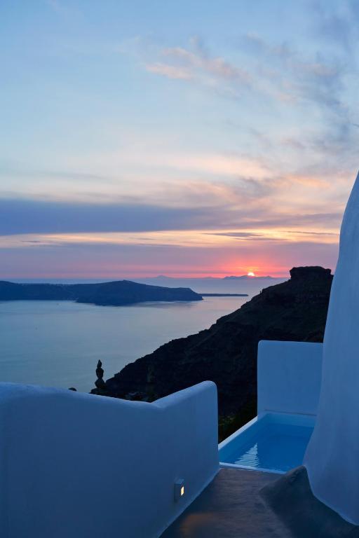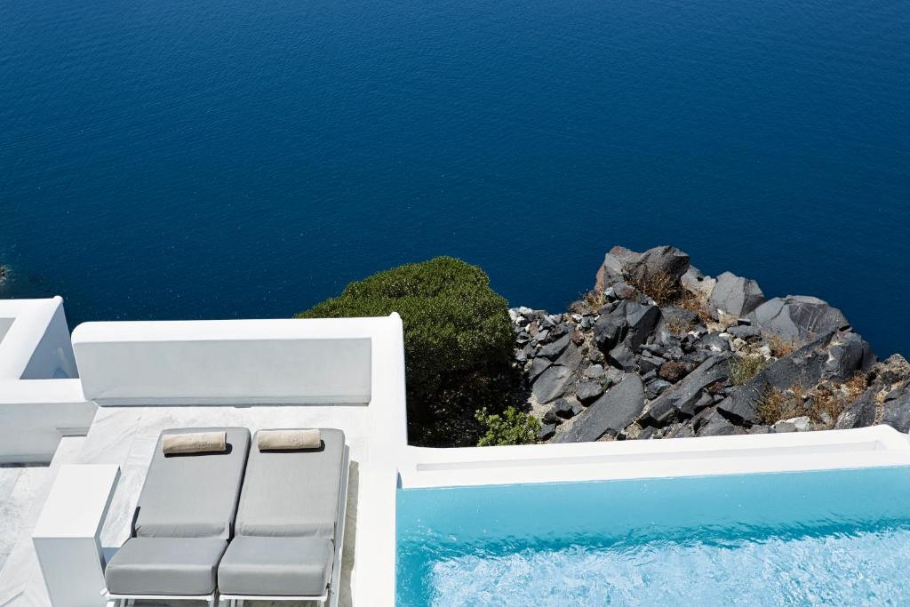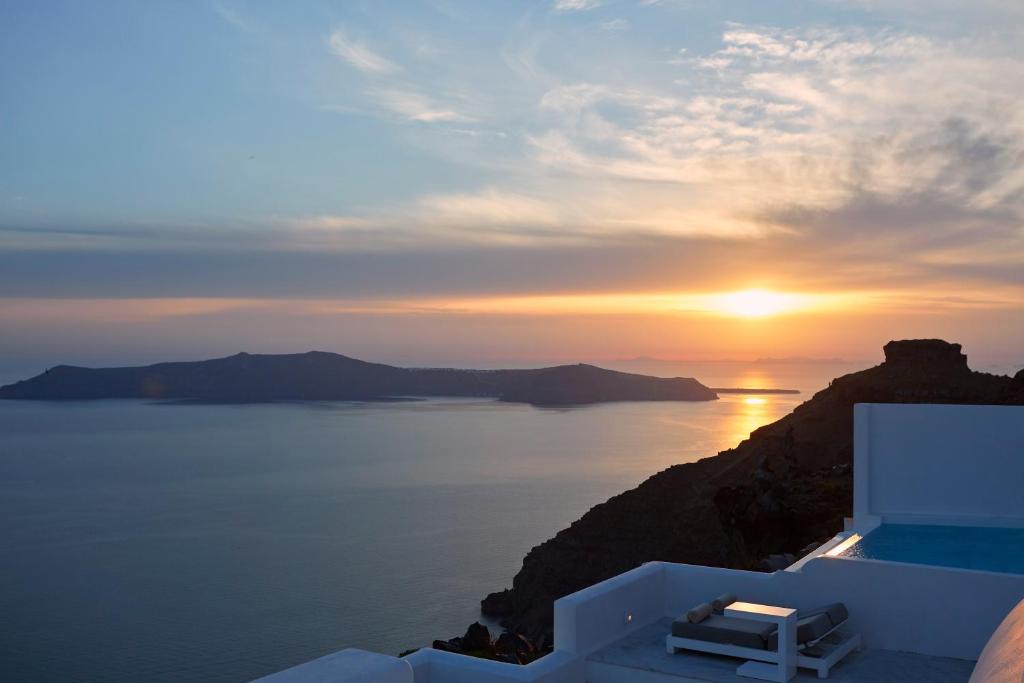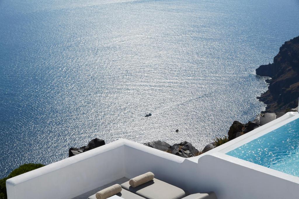 Perched on Caldera Cliff in Imerovigli, Eden Villas Santorini offers elegantly decorated villas, each with views over the Caldera and a terrace with outdoor pool. Blending traditional with modern elements, the villas are fitted with arched walls and white tones. Each has a seating area with a flat-screen satellite TV, a kitchen with a dining area, and a private bathroom.
