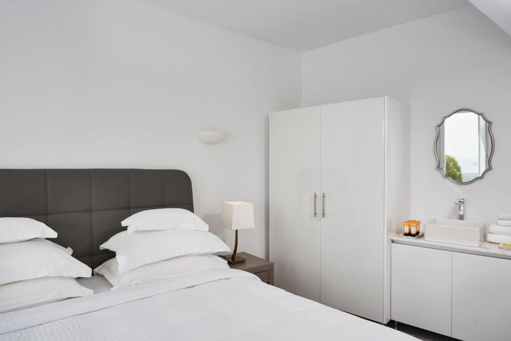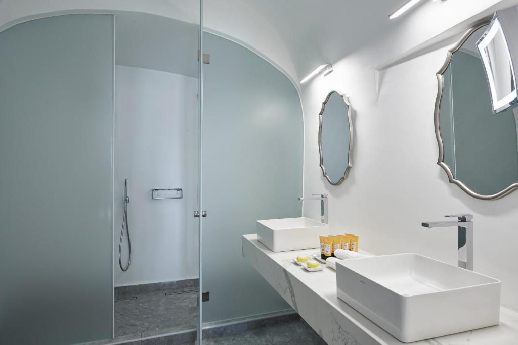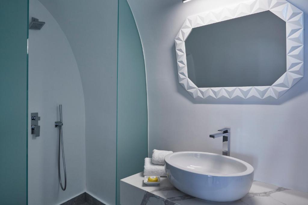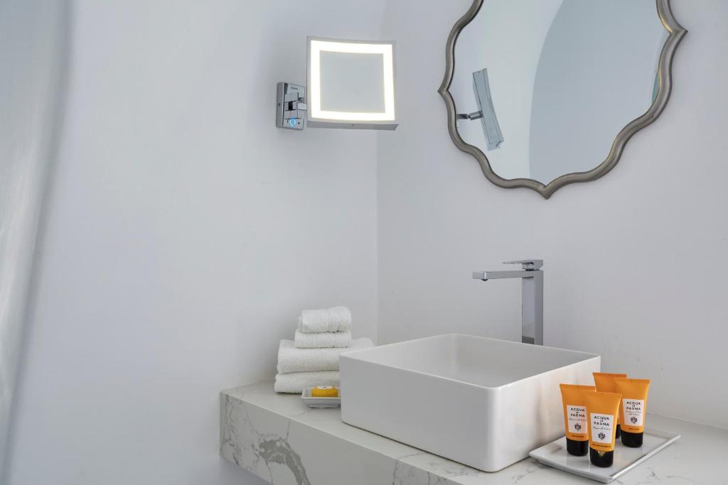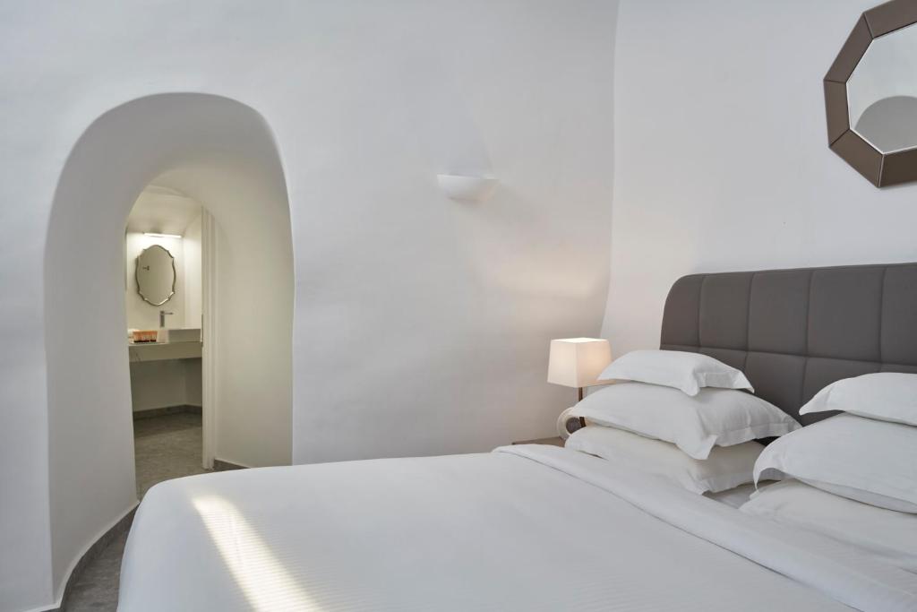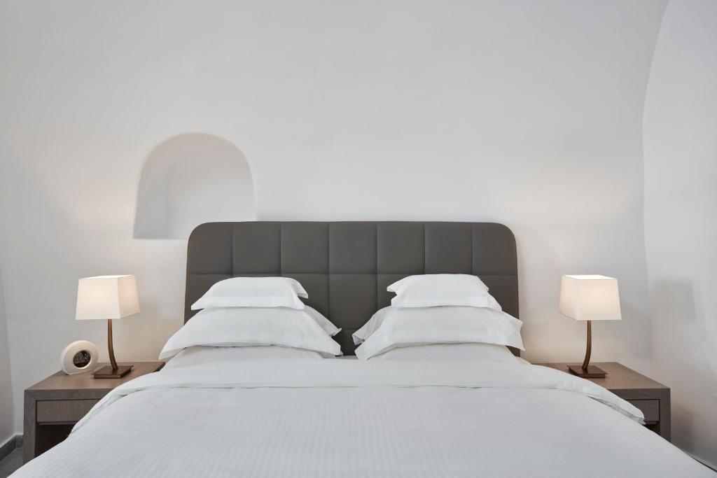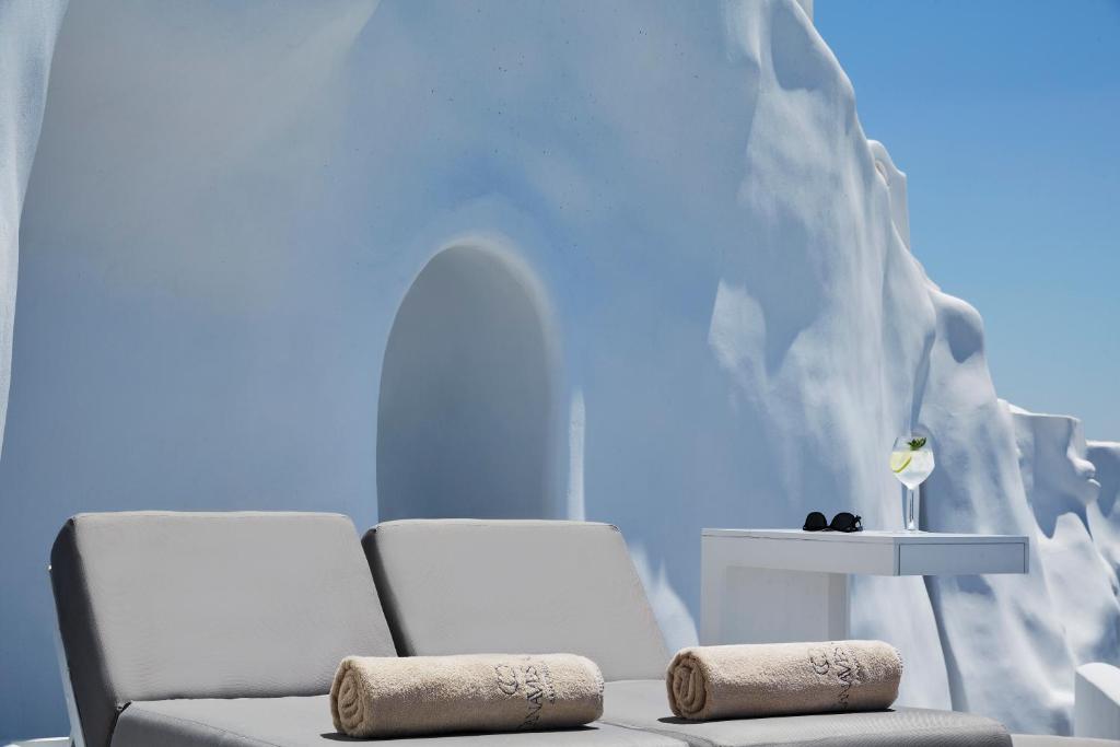Perched on Caldera Cliff in Imerovigli, Eden Villas Santorini offers elegantly decorated villas, each with views over the Caldera and a terrace with outdoor pool. Blending traditional with modern elements, the villas are fitted with arched walls and white tones. Each has a seating area with a flat-screen satellite TV, a kitchen with a dining area, and a private bathroom.
