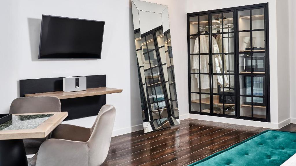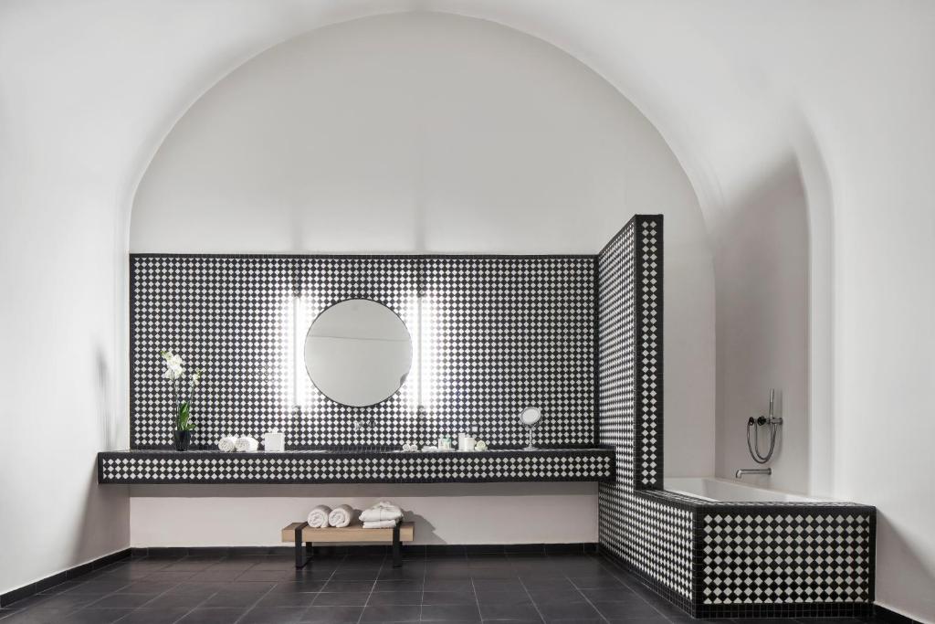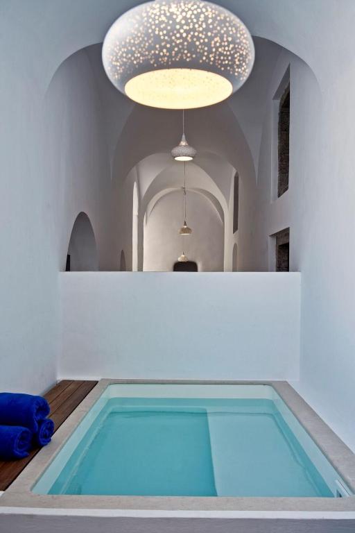 ... Comfortable Amenities: Rooms feature air-conditioning, private bathrooms, balconies with sea views, and modern amenities such as mini-bars and flat-screen TVs. Additional services include beauty treatments, wellness packages, and a 24-hour front desk. Dining Experience: The family-friendly restaurant serves Greek, Mediterranean, local, and international cuisines with vegetarian, vegan, gluten-free, and dairy-free options. Dining options include brunch, lunch, dinner, and cocktails in a traditional, modern, or romantic ambiance. Prime Location: Located 4.3 mi from Santorini International Airport, the hotel is near attractions like the Archaeological Museum of Thera (3-minute walk) and Megaro Gyzi (656 feet). Guests can enjoy boating and scuba diving in the surrounding area.