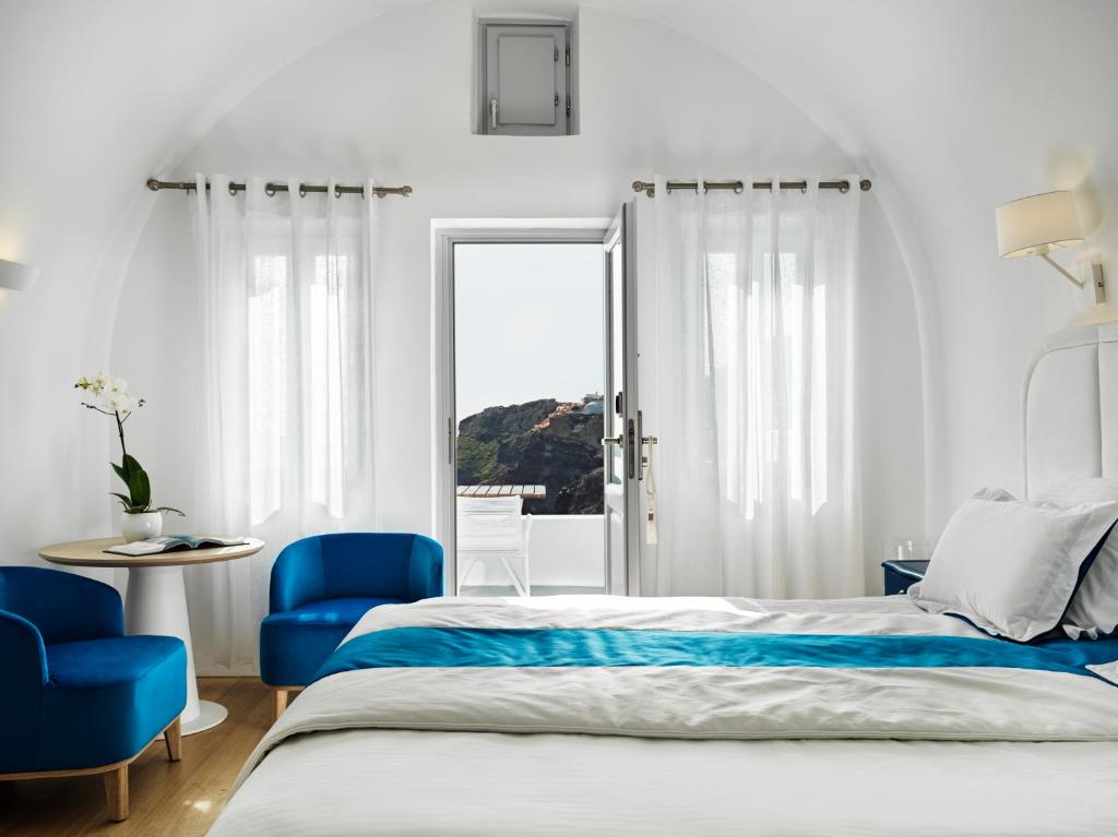 Perched on the cliffs of Oia, 300 feet above the blue waters of the Aegean, Katikies Hotel offers 2 restaurants - Botrini's Santorini and Katikies Lower Deck Lounge. Its infinity pools enjoy sweeping views of the Caldera. Each of the white-washed rooms has a private terrace with unforgettable sea views.