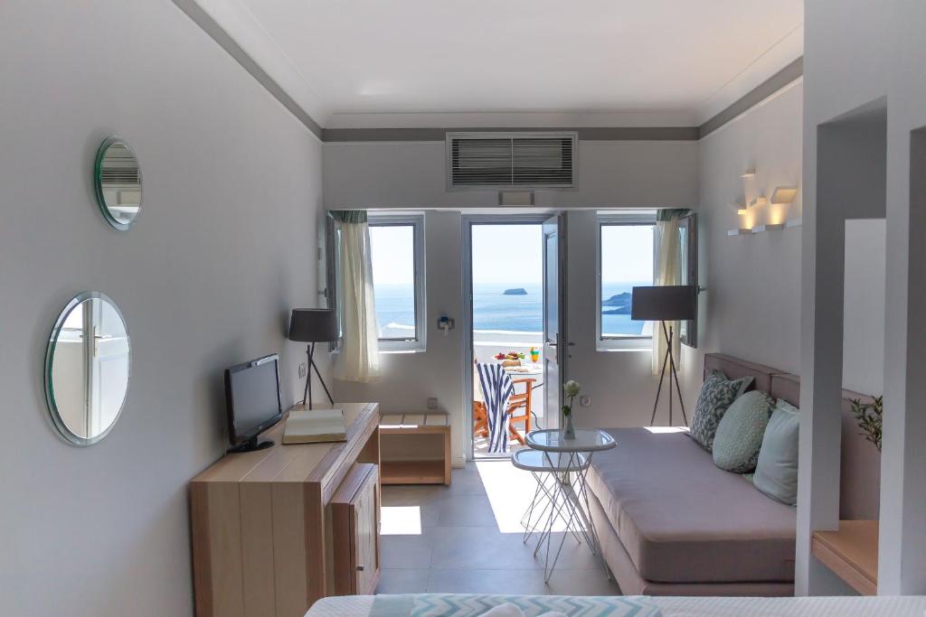 Standing majestically on the edge of the cliffs, Volcano View features a restaurant with Caldera view, and 3 swimming pools overlooking the volcano, the sea and the famous Santorini sunset. All guestrooms have a private balcony or terrace overlooking the sea and the volcano. They are equipped with individual climate control units, satellite TV and hairdryer.