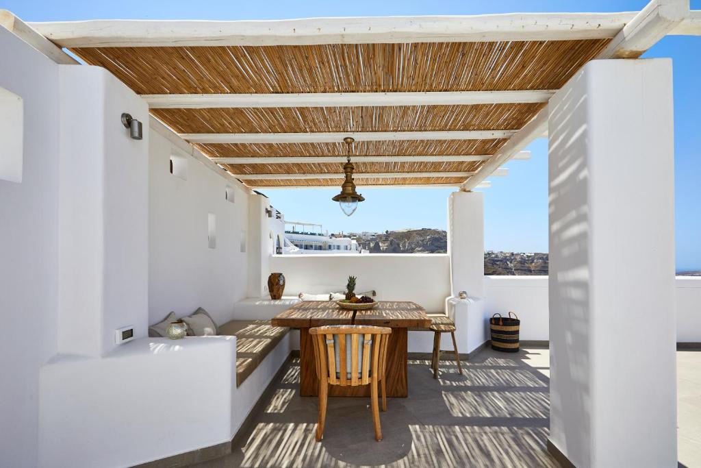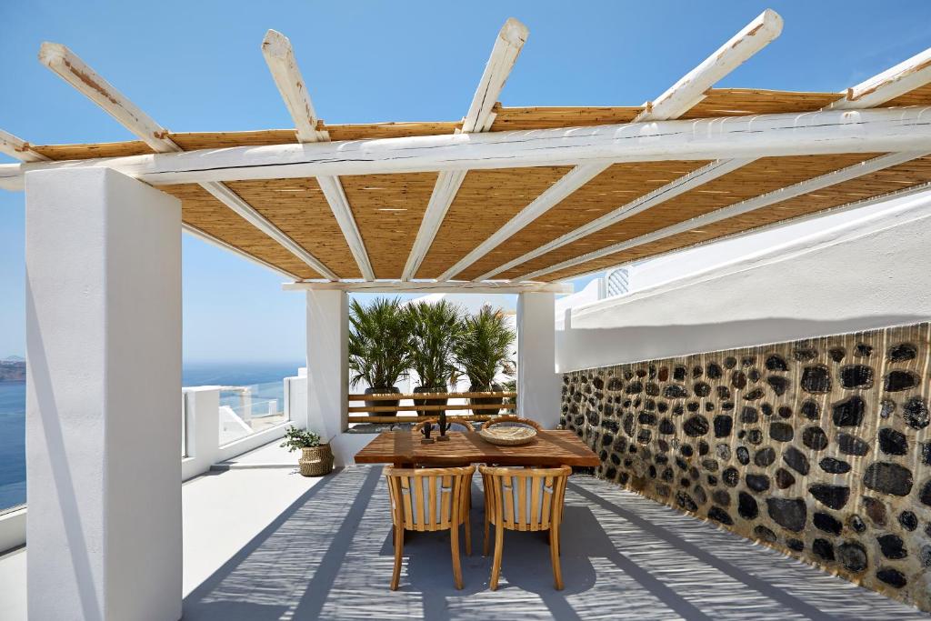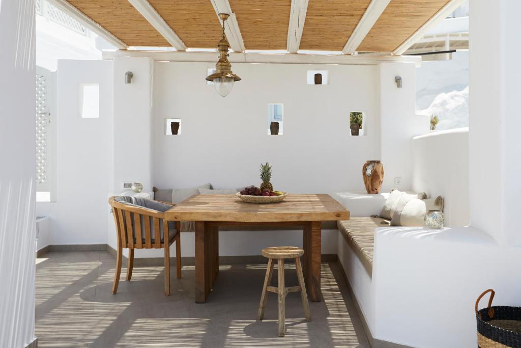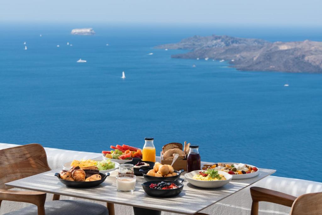 Volcano View by Caldera Collection is consisted of of three areas, the Hotel, perched atop the caldera cliffs offering fantastic views of the sea, the VIP Villas consisting of 7 luxury villas with private pools, and the affordable rooms, which benefit from the hotel’s facilities. The Caldera restaurant is open for a la carte meals from 13:00 to 22:00 and you can choose from a wide selection of traditional Santorini and Greek appetizers, fresh crispy salads, international cuisine and desserts, while admiring the unique view of Santorini’s Caldera. Greek breakfast can also be enjoyed daily. Volcano View is just a short drive from the center of Fira. The reception desk is open 24 hours for assistance and inquiries, and guests are provided with free transfer to and from the town.