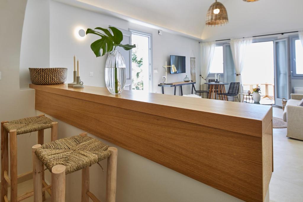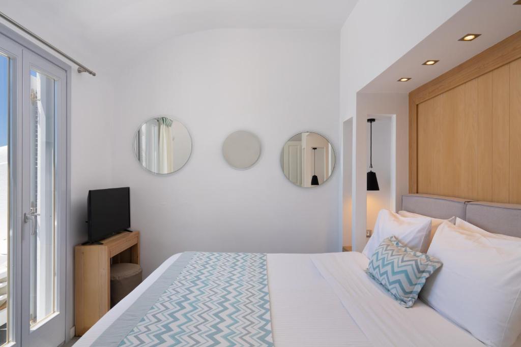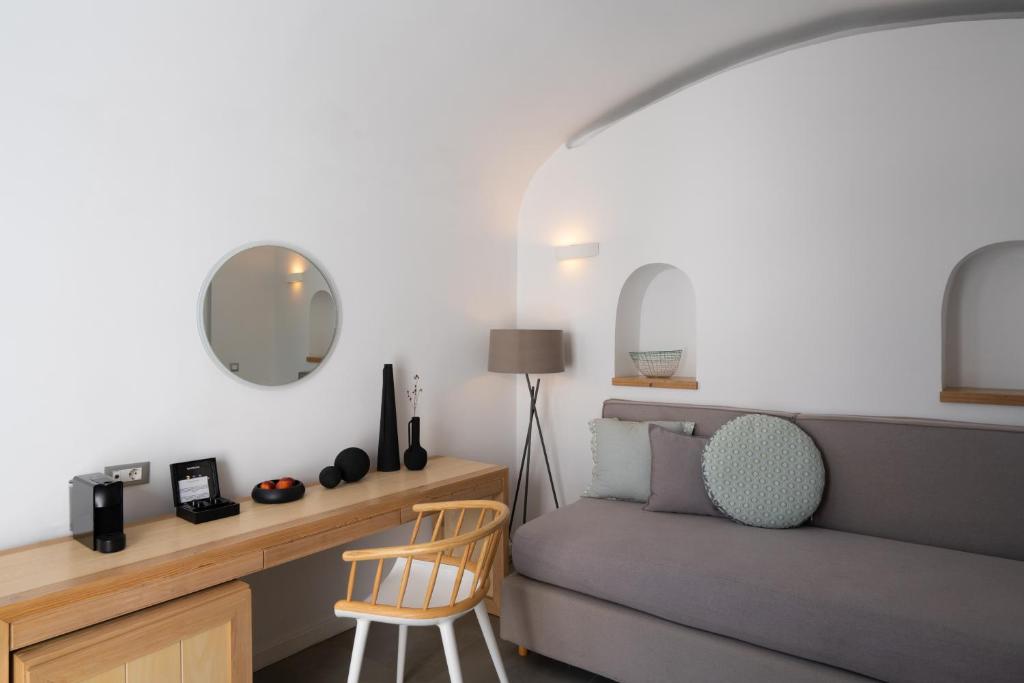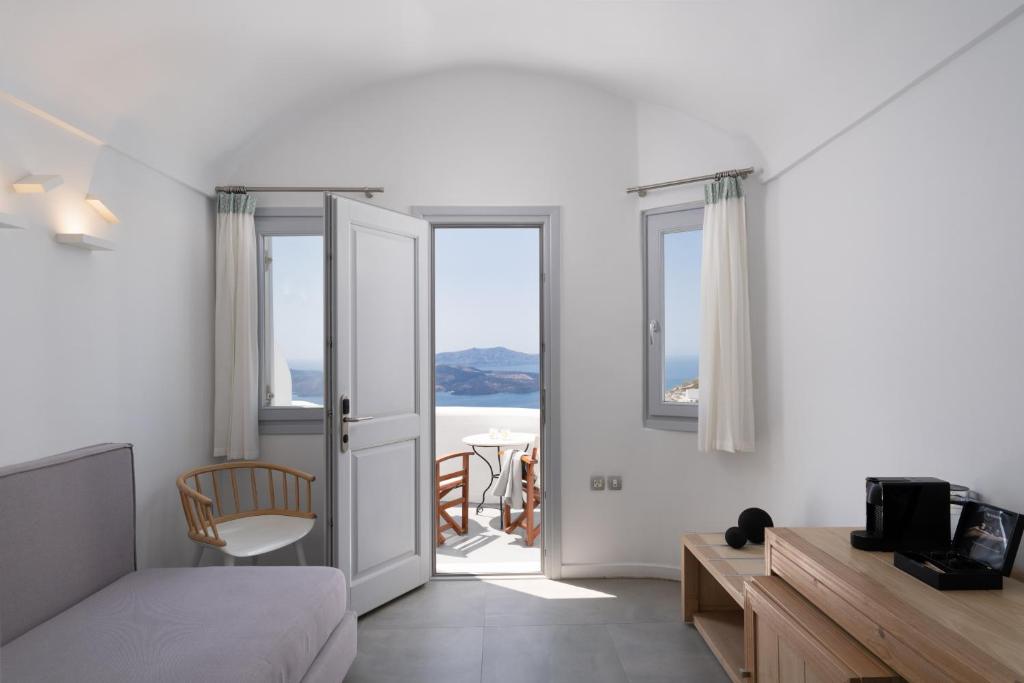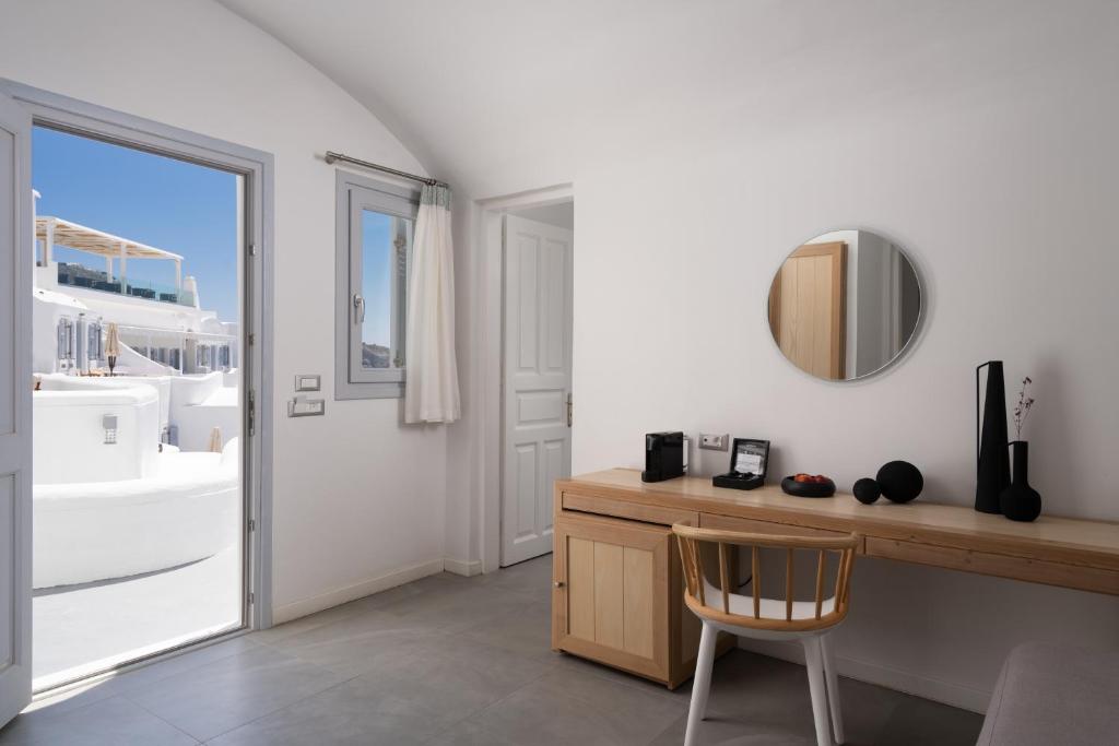 Volcano View by Caldera Collection is consisted of of three areas, the Hotel, perched atop the caldera cliffs offering fantastic views of the sea, the VIP Villas consisting of 7 luxury villas with private pools, and the affordable rooms, which benefit from the hotel’s facilities. The Caldera restaurant is open for a la carte meals from 13:00 to 22:00 and you can choose from a wide selection of traditional Santorini and Greek appetizers, fresh crispy salads, international cuisine and desserts, while admiring the unique view of Santorini’s Caldera. Greek breakfast can also be enjoyed daily. Volcano View is just a short drive from the center of Fira. The reception desk is open 24 hours for assistance and inquiries, and guests are provided with free transfer to and from the town.