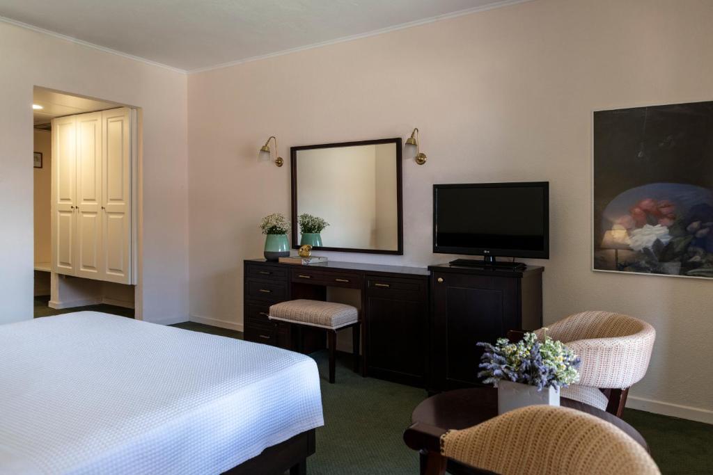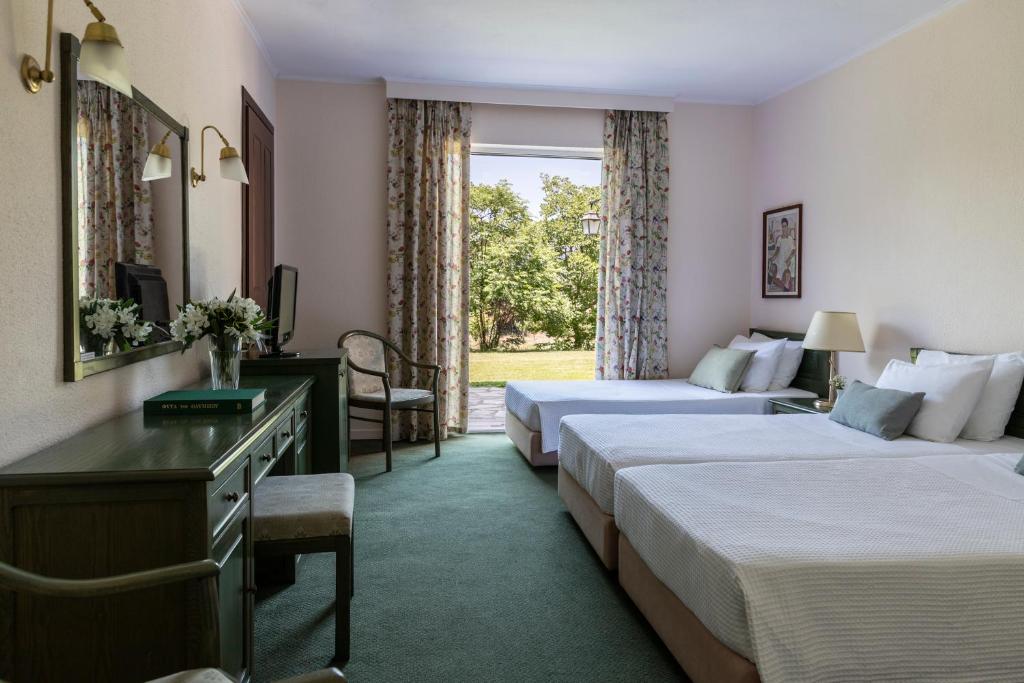 Each unit is elegantly decorated with dark wooden furnishings and soft colors and features a bathroom with hairdryer and free toiletries. Ironing facilities can be provided upon request. A rich breakfast can be enjoyed daily at the hotel's dining area or in the rooms upon request. Greek and international flavors are served at the elegant setting of the on-site restaurants for dinner, while coffee and drinks can also be enjoyed by the fireplaces throughout the day. Extra services include a 24-hour front desk, luggage storage and car rental. The property also has 6 meeting rooms that can host various events. Guests can explore the 24 monasteries hidden among the Meteora rocks. The center of Kalampaka Town lies within 3.7 mi from Amalia Hotel Kalampaka, while Trikala Town is 9.9 mi away. Free parking is available on site and free WiFi access is provided throughout.