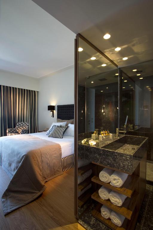 ... Fitted with parquet floors and earthy colors, all rooms and suites of Atlantis Hotel enjoy views over the city of Heraklion, the harbor or the hotel's atrium. Each unit includes a desk and comes equipped with air conditioning, flat-screen TV with satellite channels, coffee machine and mini-bar. The modern bathrooms are stocked with free toiletries, bathrobes and slippers. Guests can relax at the sun loungers by the pool and enjoy a refreshing drink from the on-site bar. Breakfast is served daily at the modern setting of the lounge bar, where drinks and cocktails can also be enjoyed. Mediterranean flavors accompanied by fine wine are available daily at the hotel's main restaurant. Extra hotel services include a 24-hour front desk, luggage storage and free WiFi access throughout. Laundry, dry cleaning and ironing can be provided on request and upon charge. Heraklion Port, connecting to Piraeus, is located 1.2 mi from Aquila Atlantis Hotel, while Nikos Kazantzakis International Airport is at a distance of 2.5 mi. The archaeological site of Knossos lies within 3.7 mi away.