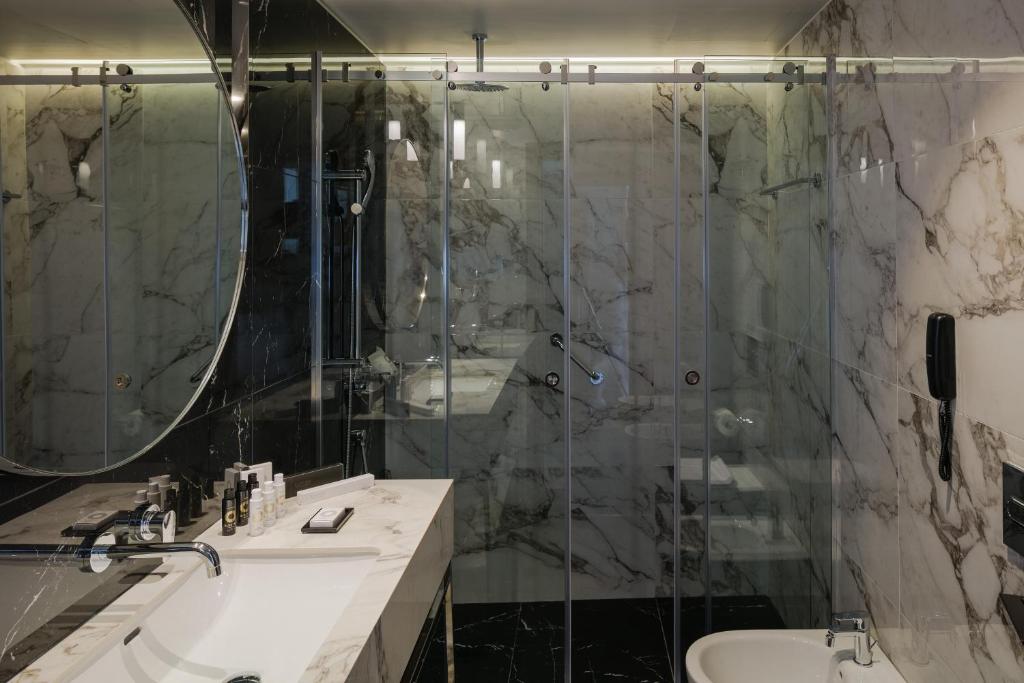 Today Electra Palace reopens its gates following a complete makeover. Now it offers not just the opportunity to stay at the heart of the city, but also to enjoy a wide array of top-class amenities and sophisticated aesthetics, while experiencing the grandeur of an architectural masterpiece. Throughout the hotel, furniture pieces by some of world’s most gifted designers are featured alongside with works signed by some of the biggest names in the Greek art scene. The curvy corridors display a unique private collection of Russian artists. All these artistic marvels are brought together in collaboration with MOMuS. The top aesthetic expression continues into the guest rooms. Lightings, fabrics, bathrooms, and in fact every carefully considered alluring detail, is a special order commissioned by the hotel to a selected team of designers. On the very top of the building there is an external swimming pool overlooking the sea, with its own private sun deck. At the same spot, visitors can enjoy our very hip all-day restaurant and bar, with spectacular panoramic views. Its food, a blend of Mediterranean flavors and styles, the inspired cocktail list and the resident DJ’s chill music vibes gather an eclectic mix of hotel guests and cosmopolitan locals. 8 floors down there is a wellness center, a fully equipped gym and an indoor pool, infused with a strong sense of modernity in total accordance to the stylistic signature of the hotel. The hotel’s Conference halls are situated in the impressive former ballroom. Huge arched windows flood the halls with natural light, while all walls continue the tribute to Thessaloniki’s glorious history with black and white pictures by local celebrity photographer Yiannis Kyriakidis.
