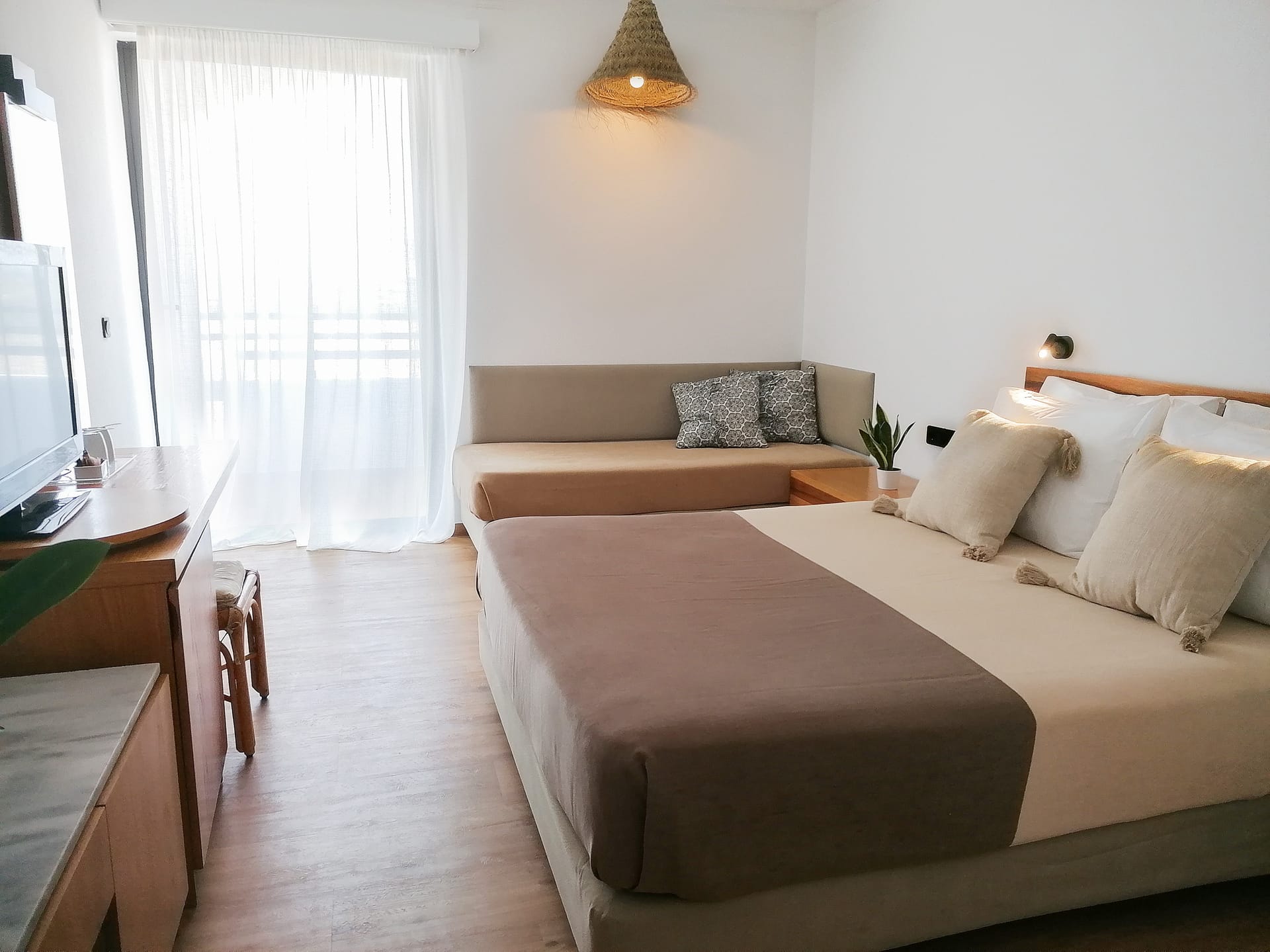Surrounded by tropical gardens, only 16 feet from a private beach in Marmari on Kos, Grecotel Casa Paradiso offers a pool with water slides, a spa and tennis court. It offers elegant rooms with balcony overlooking the garden and the Aegean Sea. Featuring wooden furnishings in earthy or fresh, summer colors, all rooms at the Grecotel Casa Paradiso have a seating area with sofa and satellite TV.